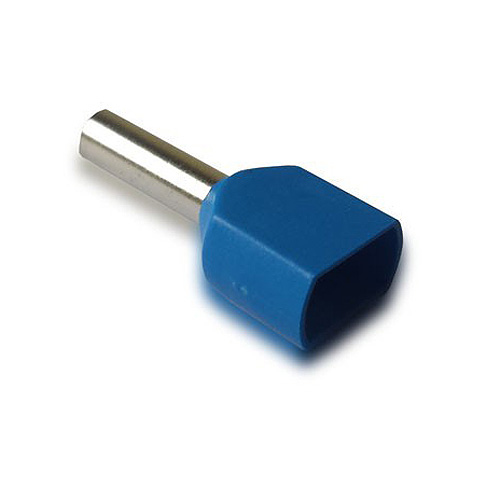 Изолированный кабельный обжимной втулочный наконечник для проводов; 2х16 мм.кв.; матер.: обжимной гильзы - медь лужёная, защитной гильзы -нейлон; гильза 14 мм; цвет: синий. F = 14 мм, L = 31.3 мм, W = 19 мм, B = 17.3 мм, D = 8.7 мм, С = 8.3 мм. Max 95A