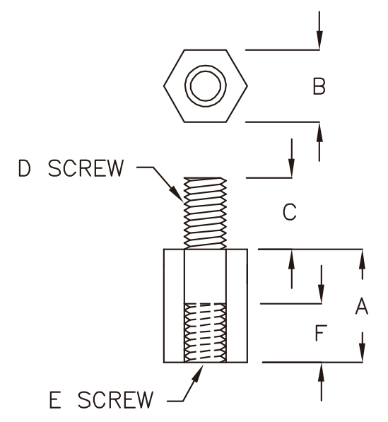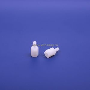 Пластиковая шестигранная межплатная стойка. Внутренняя резьба 3.0 мм, наружная 3 мм. A=9.0мм, В=6.0мм, С=6.0 мм, F=6.0 мм. Материал: нейлон 66 UL94-V2, цвет: натуральный