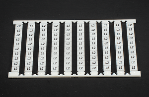 Маркер для клеммников DIN (DKK2.5, SK2.5, S4K2.5, SGK2.5, SG4K2.5, PM2.5, WPM2.5, WPPM2.5, WDKM2.5, WDDKM2.5. Ширина 5.1 мм. Вертикальная печать. Пластина белая, символы черные. 1 пл. - 100 симв. Символы: L2