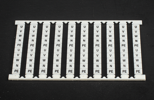 Маркер для клеммников DIN (DKK2.5, SK2.5, S4K2.5, SGK2.5, SG4K2.5, PM2.5, WPM2.5, WPPM2.5, WDKM2.5, WDDKM2.5. Ширина 5.1 мм. Вертикальная печать. Пластина белая, символы черные. 1 пл. - 100 симв. Символы: U, V, W, N, PE