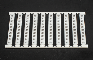 Маркер для клеммников DIN (DKK2.5, SK2.5, S4K2.5, SGK2.5, SG4K2.5, PM2.5, WPM2.5, WPPM2.5, WDKM2.5, WDDKM2.5. Ширина 5.1 мм. Горизонтальная печать. Пластина белая, символы черные. 1 пл. - 100 симв. Символы: 71 - 80
