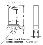 Держатель провода с защелкой в плату. Материал: полиамид 66. Цвет: натуральный. Толщина платы от 0.5 до 2.3 мм. Монтажное отверстие 4.8 мм. A = 26 mm, B = 17.5 mm Аналог KSS KWS-2