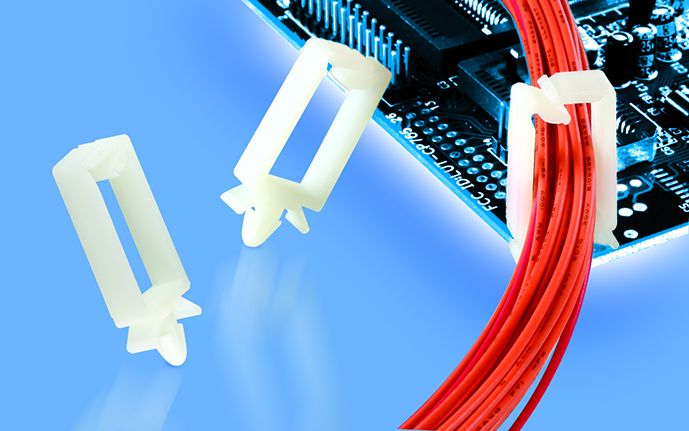 Держатель провода с защелкой в плату. Материал: полиамид 66. Цвет: натуральный. Толщина платы от 0.5 до 2.3 мм. Монтажное отверстие 4.8 мм. A = 34 mm, B = 27 mm Аналог KSS KWS-3